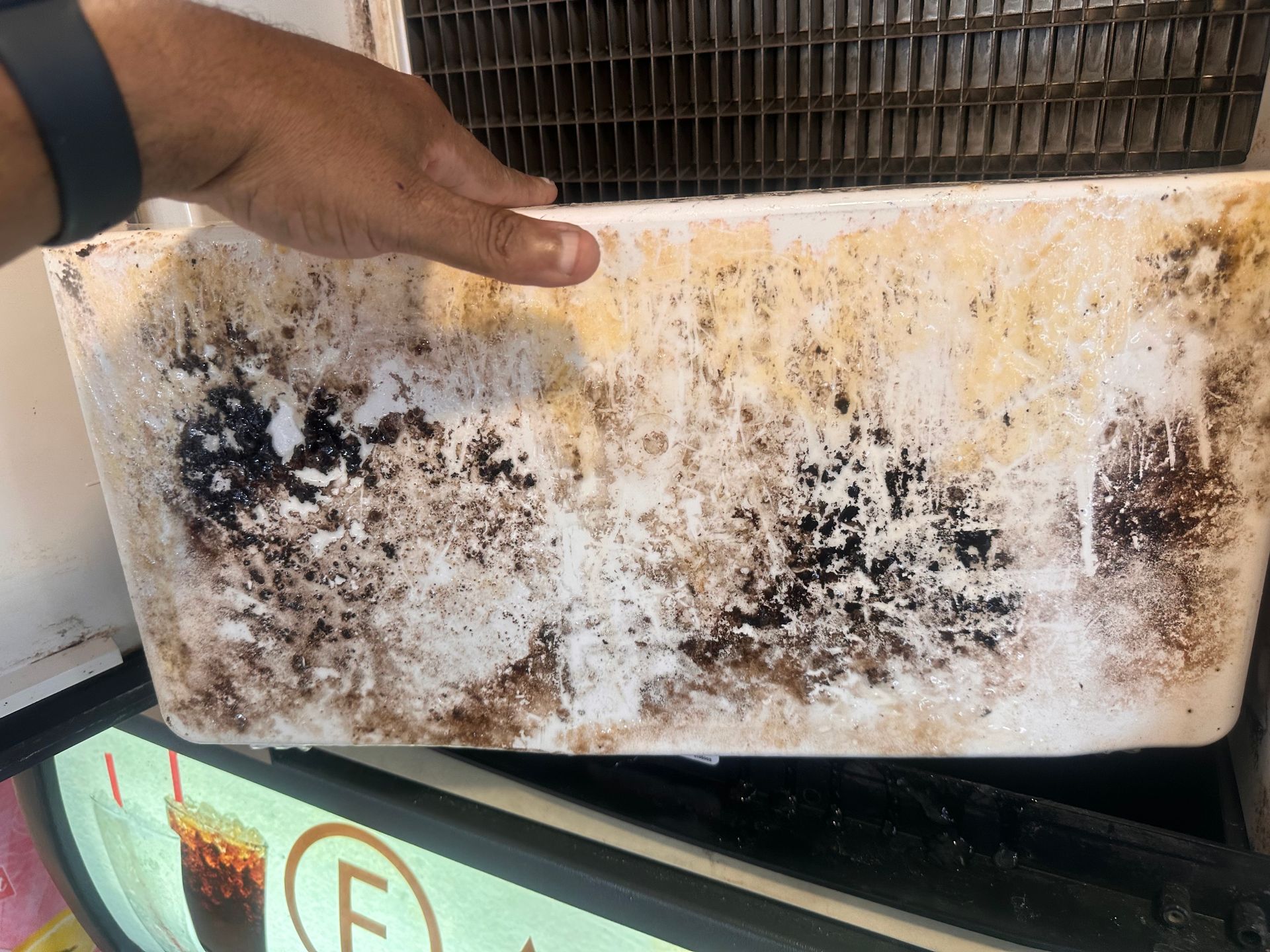 This ice maker had mold, slime, and mineral deposits that reduced output and posed major food safety risks. A generic HVAC service might wipe the surface but miss the internal sanitation steps critical for safe ice production.